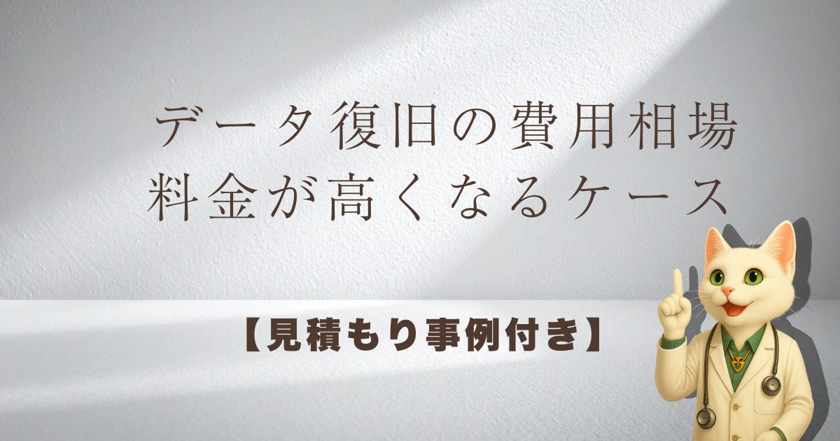 データ復旧の費用相場と料金が高くなるケース【見積もり事例付き】 外付けHDDが突然認識しなくなったり、パソコンが起動しなくなって中のデータにアクセスできなくなると、多くの方が最初に気になるのが費用です。 ただしデータ復旧の料金は、家電修理のように一律の定価があるわけではなく、次のような要素が複雑に関わっています。 媒体の種類 障害の内容と重さ 保存容量や台数 必要となる作業工程や専用機材の有無 対応スピードやセキュリティ要件 こうした条件によって料金は大きく変動します。事前に仕組みを知らないと、高いのか安 ...